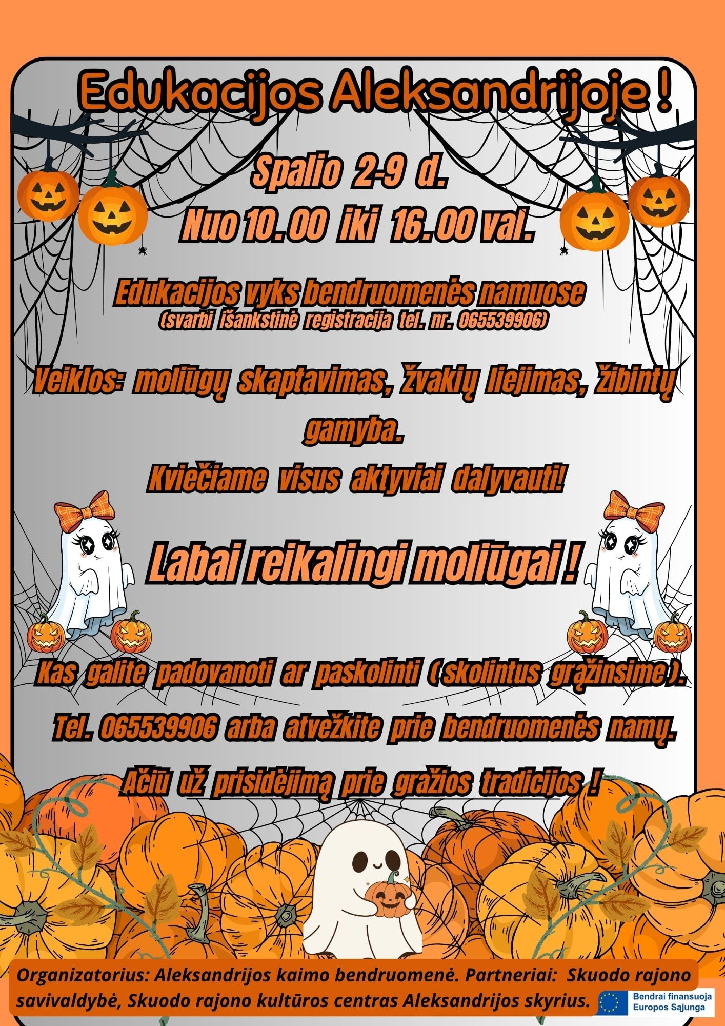 Skuodas > Renginiai > Moliūgų skaptavimo dirbtuvėlės AleksandrijojeMoliūgų skaptavimo dirbtuvėlės Aleksandrijojeby designer2025-09-302025-10-06 Spalio 2-9 dienomis nuo 9 val. iki 16 val. vyks moliūgų skaptavimo dorbtuvėlės Aleksandrijos bendruomenės namuose.